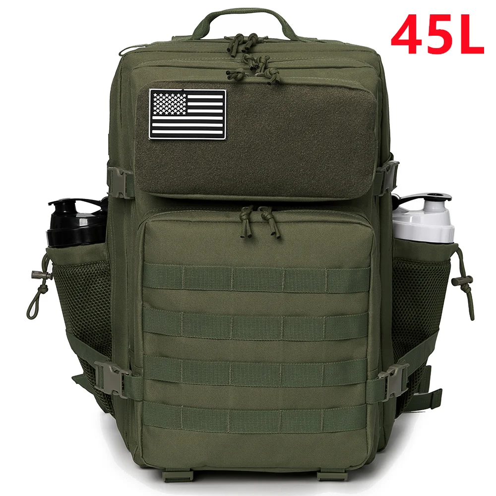 Choose your perfect fit with this versatile tactical backpack, available in compact 25L or spacious 45L capacities. It is designed to serve as the ultimate daily driver for school, gym sessions, or rugged outdoor trekking. The standout design features dual side cup holders, allowing you to carry two large water bottles or protein shakers securely. Constructed from high-density, tear-resistant fabric, this bag is built to withstand the demands of daily use and rough terrain. Multiple zippered compartments ensure your books, electronics, and camping gear stay organized and easy to access. The ergonomic design includes padded shoulder straps and a breathable back panel for all-day carrying comfort. Its tactical aesthetic features Molle webbing, giving you the option to attach extra pouches or carabiners. Whether you are commuting to class or hiking a mountain trail, this rucksack adapts to your lifestyle. The sturdy zippers and reinforced stitching provide peace of mind for heavy loads. Stay hydrated and organized on every adventure with this durable, multi-functional backpack