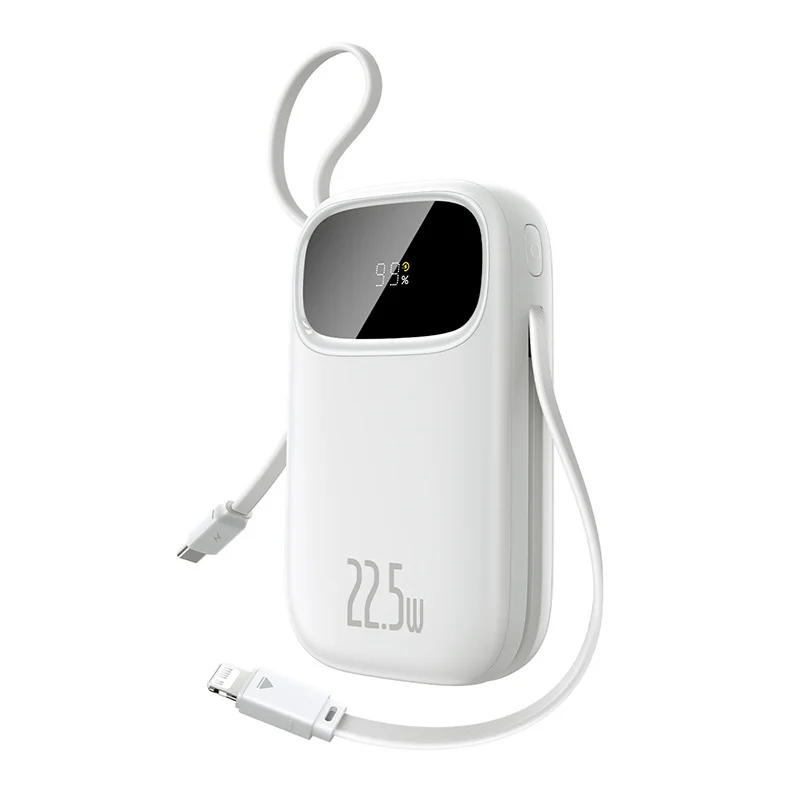 The Baseus Retractable Cable Power Bank offers the ultimate convenience for modern travelers and tech enthusiasts alike. Featuring integrated, retractable USB-C and Lightning cables, this device eliminates the need to carry extra tangled wires in your bag. With a powerful 22.5W output, it delivers rapid charging to the latest smartphones, including the iPhone 16 and Samsung S25. Choose between 10000mAh or 20000mAh capacities to suit your daily commute or long-distance travel needs. The sleek, matte finish and compact design ensure it fits comfortably in your pocket or palm.