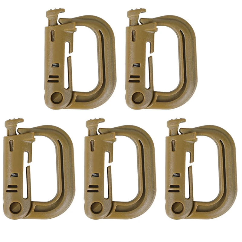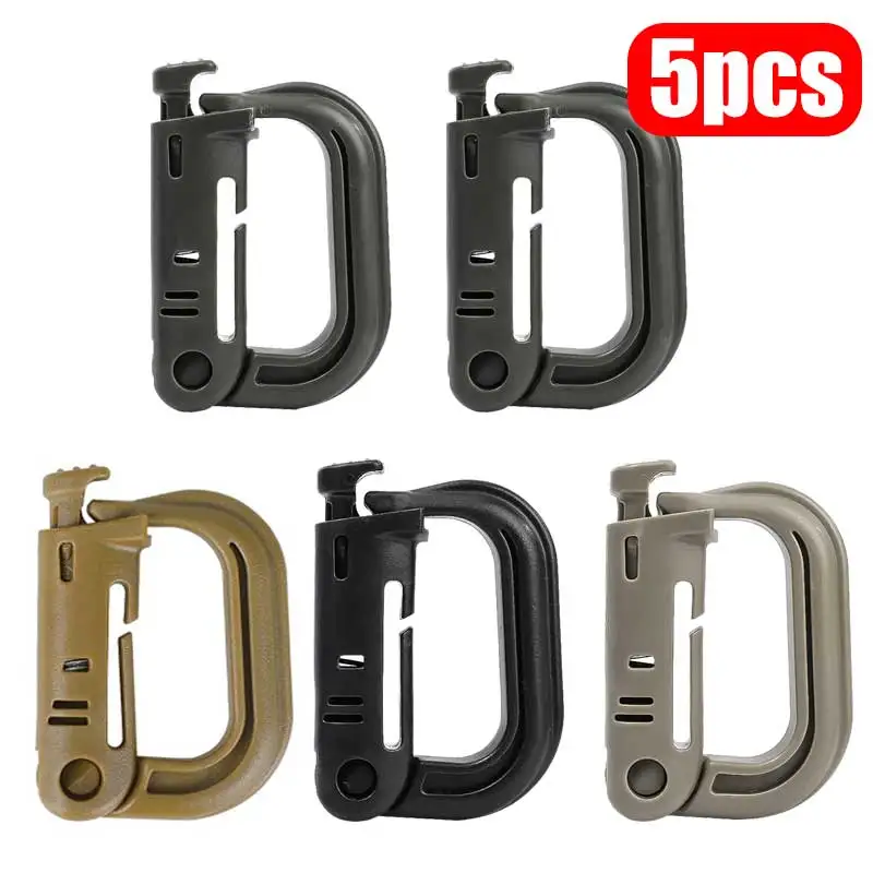 The 5PCS Grimloc Molle Carabiner D-Locking Clips are essential accessories for tactical and outdoor gear. Designed for Molle-compatible systems, they easily attach to backpacks, vests, or belts. Made from high-strength plastic, they are lightweight yet extremely durable. The D-locking mechanism ensures a secure hold for keys, tools, or accessories. Each clip features a quick-release design for fast and easy operation. Their corrosion-resistant construction makes them ideal for all-weather use. Perfect for camping, hiking, military, or everyday carry setups, they enhance gear organization and accessibility. The compact design allows for efficient storage without adding bulk. These clips are reliable, reusable, and built to last under heavy-duty use. Choose the Grimloc Molle Carabiner Set to keep your gear secure, organized, and mission-ready.