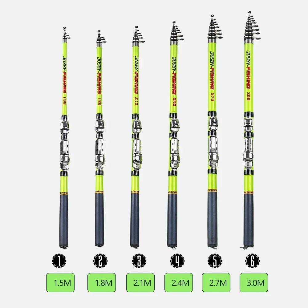 The JOSBY Carbon Fiber Spinning Fishing Rod delivers superior strength and performance in a compact, telescopic design. Crafted from premium carbon fiber, it offers exceptional durability while remaining lightweight and easy to carry. Available in multiple lengths from 1.5m to 3m, it adapts perfectly to different fishing environments. Its telescopic structure makes storage and transport effortless for travelers and outdoor enthusiasts. The rod features a comfortable anti-slip handle for improved grip and control. Engineered for both freshwater and light saltwater use, it’s ideal for casual anglers and seasoned pros. Smooth line flow ensures long casting distance and precision accuracy. Its mini yet powerful build provides excellent flexibility and resilience under pressure. Designed for reliability, it’s the perfect blend of strength and convenience. Take the JOSBY Carbon Spinning Rod anywhere your fishing adventures lead.