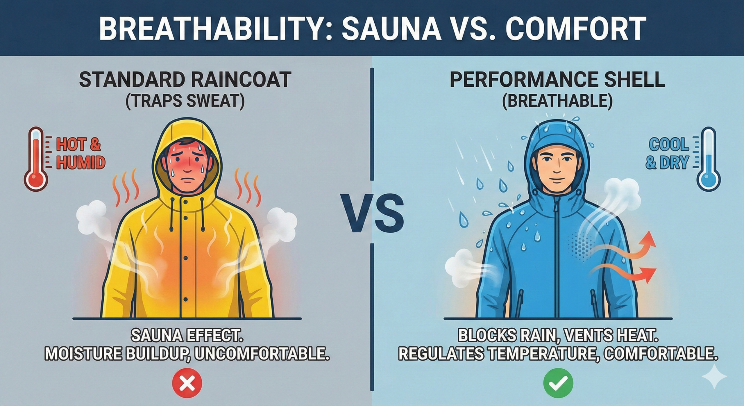 Unlike heavy, rubberized raincoats that trap sweat, this jacket features advanced breathability technology. It allows internal moisture vapor to escape, regulating your body temperature during high-output activities like steep ascents or trail running. The design includes an adjustable storm hood and sealed cuffs to lock out the elements, while the lightweight fabric allows the entire jacket to pack down small, taking up minimal space in your backpack. It is the perfect balance of heavy-duty protection and featherlight mobility.