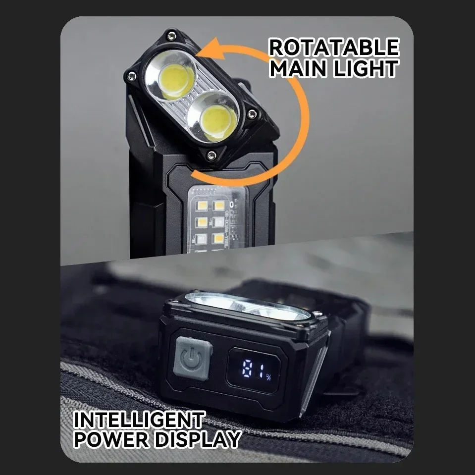 Illuminate hard-to-reach areas with this versatile multifunctional adjustable LED work light. The innovative lighting head rotates to various angles, allowing you to direct the beam exactly where you need it most. It features a powerful magnetic base that attaches securely to car hoods or metal surfaces for hands-free operation. Equipped with dual lighting modes, it serves as both a focused flashlight and a wide-beam floodlight for working. The built-in rechargeable battery is easily powered up via USB, saving you money on disposable replacements. Its compact and lightweight design allows it to fit effortlessly into your pocket, tool belt, or glove box. An integrated clip lets you attach the light to your backpack or clothing for hiking and night walks. This tool is essential for mechanics, campers, and anyone needing reliable light during power outages. Constructed from durable materials, it withstands drops and rough handling in outdoor environments. Ensure you always have the perfect lighting angle with this practical and powerful mini flashlight.