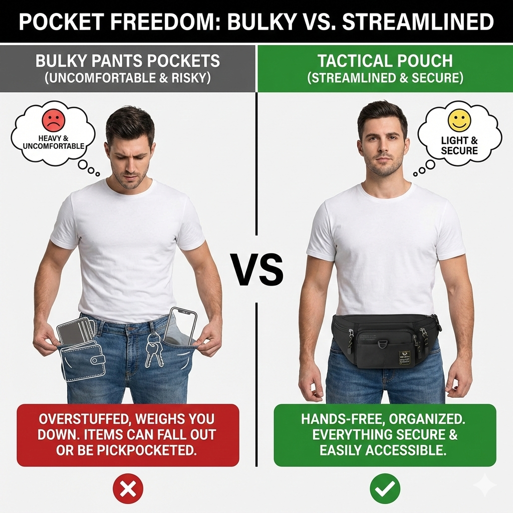 Upgrade your everyday carry with the Men’s Multi-Pocket Tactical Nylon Sling & Waist Pack. This isn’t your average tourist fanny pack; it is a rugged, military-inspired organizer designed for men who need to keep their essentials secure and accessible without stuffing their pants pockets. Made from high-density, water-resistant nylon, it resists tears and protects your gear from light rain and splashes.