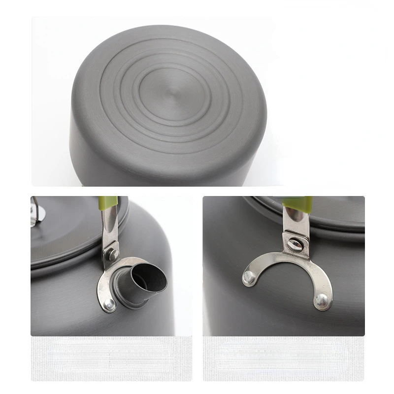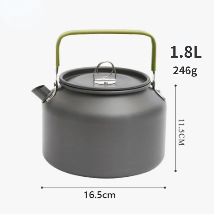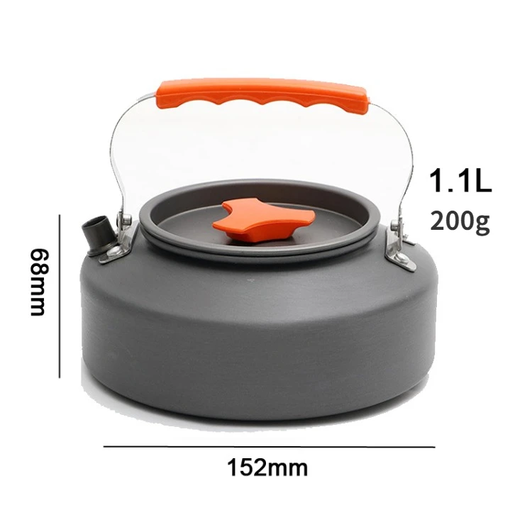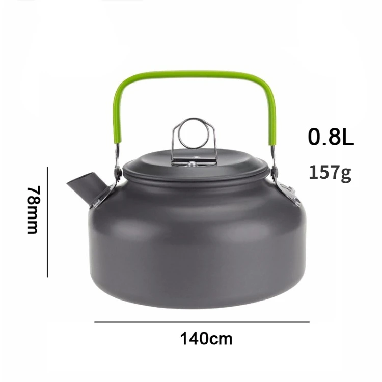 Enjoy hot beverages anywhere with this versatile aluminum alloy portable camping kettle. Made from hard-anodized aluminum, it is incredibly lightweight yet resistant to scratches and corrosion. The kettle is available in multiple sizes ranging from 0.8L to 2.5L to suit solo hikers or large groups. Its efficient flat bottom design ensures rapid heat conduction to boil water quickly and save fuel. The short, classic spout allows for smooth and precise pouring without messy drips. An ergonomic handle is wrapped in insulating plastic to protect your hands from heat while lifting. It comes with a convenient mesh storage bag that allows it to air dry while packed away. Ideal for camping, fishing, and picnics, it withstands the rigors of outdoor cooking. Upgrade your camp kitchen with this reliable and efficient water boiler.