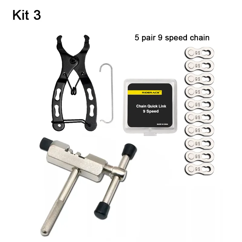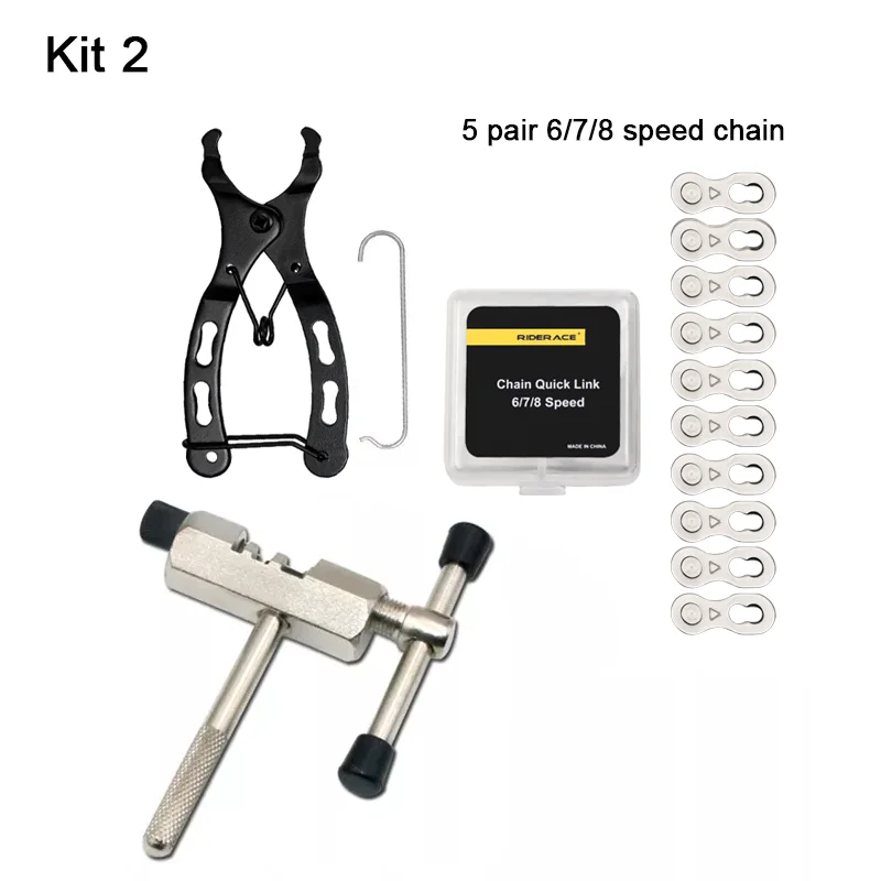 Streamline your bicycle drivetrain maintenance with the RIDERACE professional bike chain tool kit, specifically designed for quick and efficient repairs. This compact and comprehensive set includes essential items such as a high-precision chain breaker, a specialized mini quick link plier, and a collection of master link connectors. The durable metal chain breaker features an intuitive design with comfortable handles for effortlessly removing worn chain pins. Complementing this, the ergonomic mini pliers are engineered for both removing and installing master links, compatible with various speed configurations from 6-speed up to 12-speed chains. The kit provides universal compatibility, making it suitable for mountain bikes, road bikes, and other multi-speed bicycles.