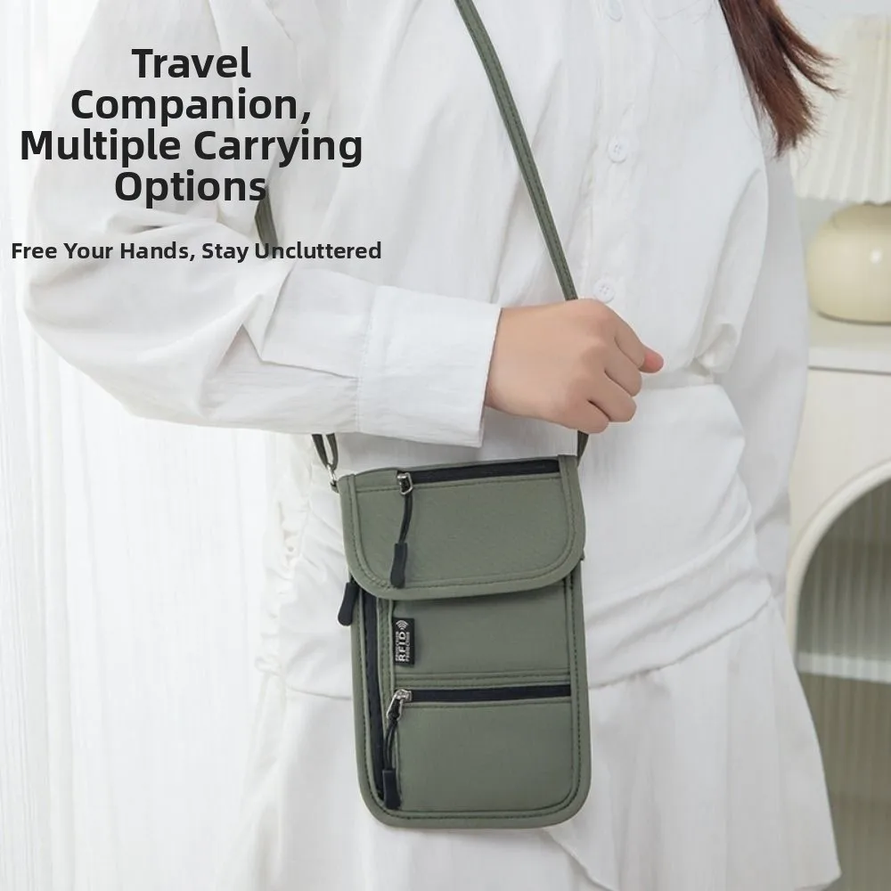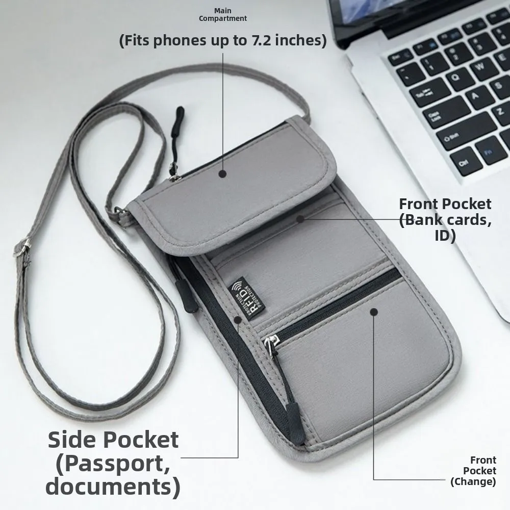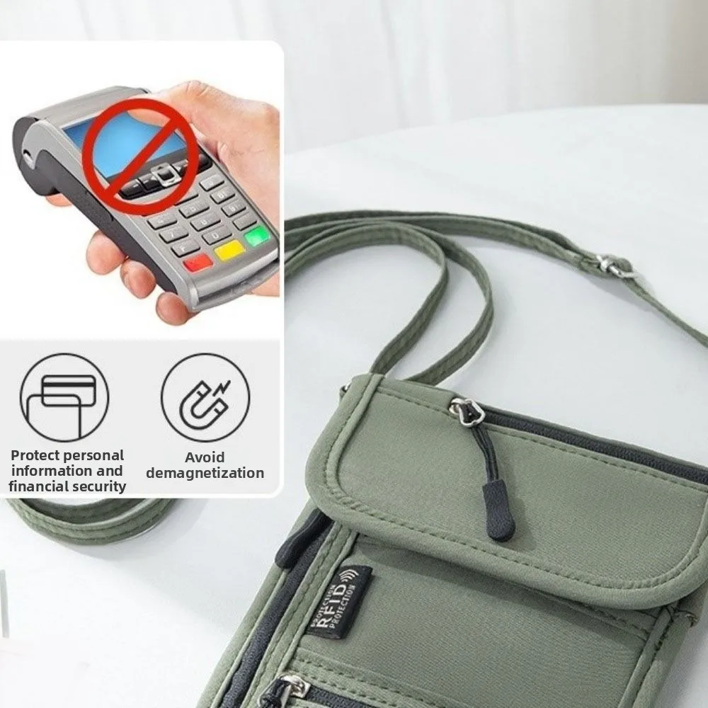 Secure your most valuable travel essentials right against your chest with this RFID Blocking Oxford Cloth Passport Bag. Designed for the safety-conscious traveler, this lightweight neck wallet allows you to navigate crowded airports and busy markets hands-free. It is constructed from high-density Oxford cloth, a material chosen for its exceptional durability and waterproof properties, ensuring your documents stay dry even in rain or humidity. The core feature is the integrated RFID-blocking liner, which prevents tech-savvy thieves from scanning your credit cards and biometric passports. The bag features an adjustable strap/lanyard, allowing you to wear it comfortably around your neck or lengthen it for a crossbody fit. With multiple zippered compartments, it is perfectly sized to hold passports, boarding passes, cash, phones, and keys, keeping them organized and hidden under your clothing for maximum security.