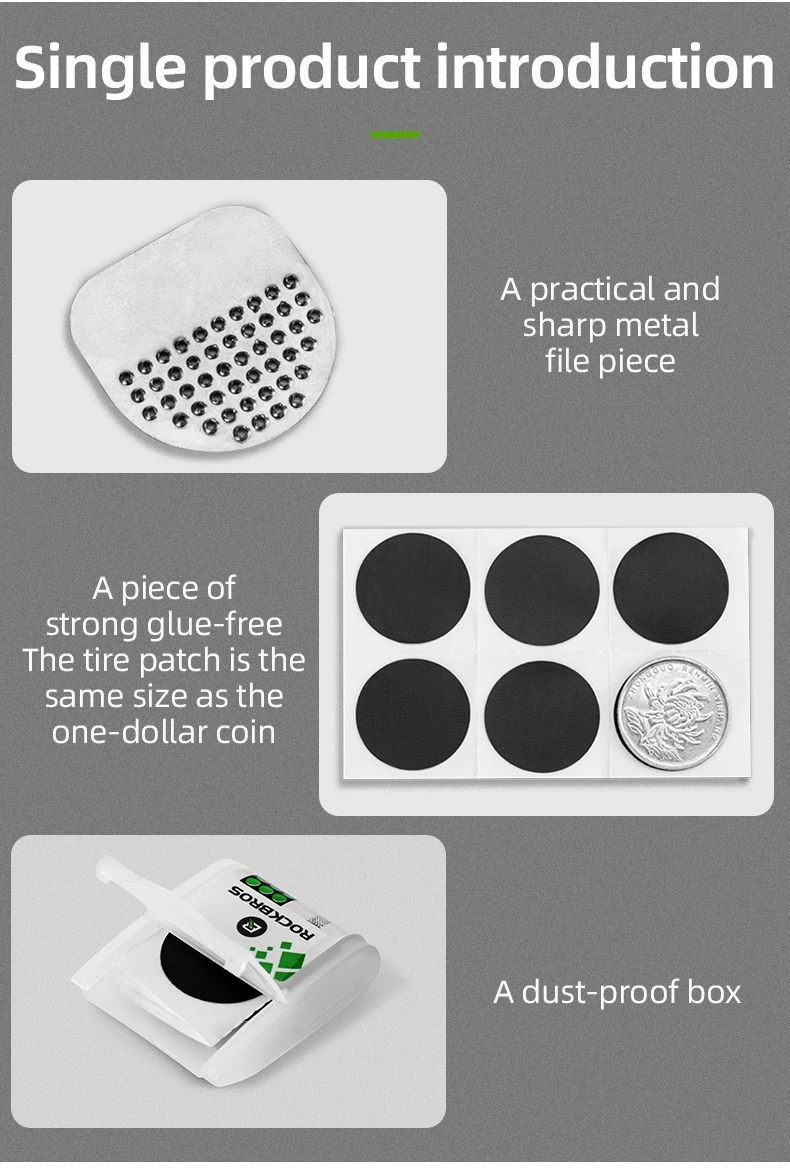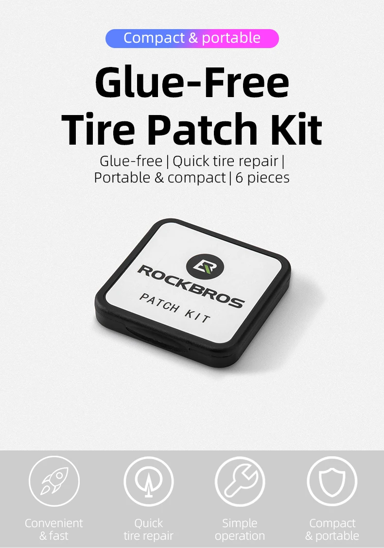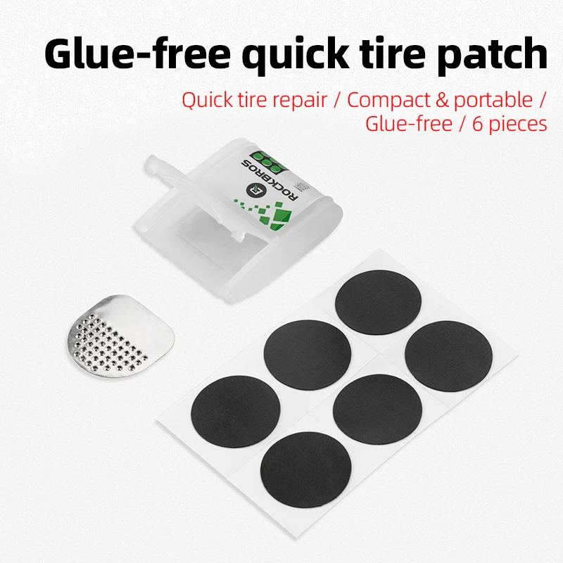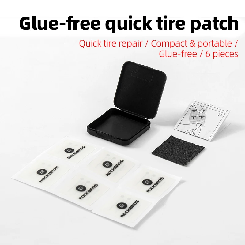 Fix flats instantly with the ROCKBROS Glue-free Repair Tool Kit, designed for ultimate speed and convenience. This compact set features innovative self-adhesive patches that eliminate the messy need for separate glue tubes. Simply scuff the punctured area with the included sandpaper and stick the patch on for an immediate, airtight seal. Designed for both mountain and road bike inner tubes, these patches are highly flexible and durable. The super-thin material stretches with the tube as it inflates, ensuring a smooth ride without noticeable bumps. All components are housed in a tiny, lightweight box that fits effortlessly into a jersey pocket or saddlebag. It is the perfect emergency backup for daily commuting, long-distance touring, or trail riding. The kit typically includes multiple patches and a roughing tool, giving you everything required for a roadside repair. Its ease of use makes it ideal for beginners who find traditional vulcanizing glue difficult or time-consuming to manage. Get back on the road in seconds with this essential, hassle-free puncture repair solution.