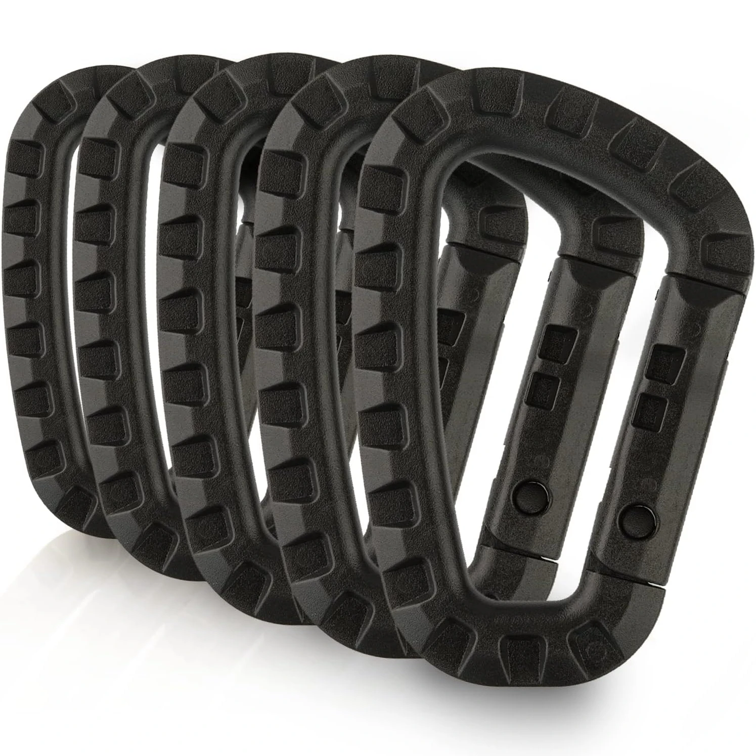 The 5Pcs Tactical 3.5″ Plastic Carabiner Molle Clips are perfect for organizing and securing your outdoor gear. Crafted from durable, lightweight plastic, these clips provide strong holding power without adding extra weight. The D-shape design with a hard spring snap ensures a reliable and secure attachment. Compatible with Molle webbing systems, they easily connect to backpacks, belts, and tactical vests. Ideal for hanging keys, tools, or water bottles, they keep essentials within easy reach. The corrosion-resistant material ensures long-lasting performance in any environment. Quick and easy to attach or detach, they enhance convenience during camping, hiking, or everyday use. Their compact size fits neatly into gear setups without clutter. Designed for EDC and tactical applications, these clips combine functionality with rugged dependability. Keep your gear organized and accessible with these Tactical Molle Carabiner Clips.