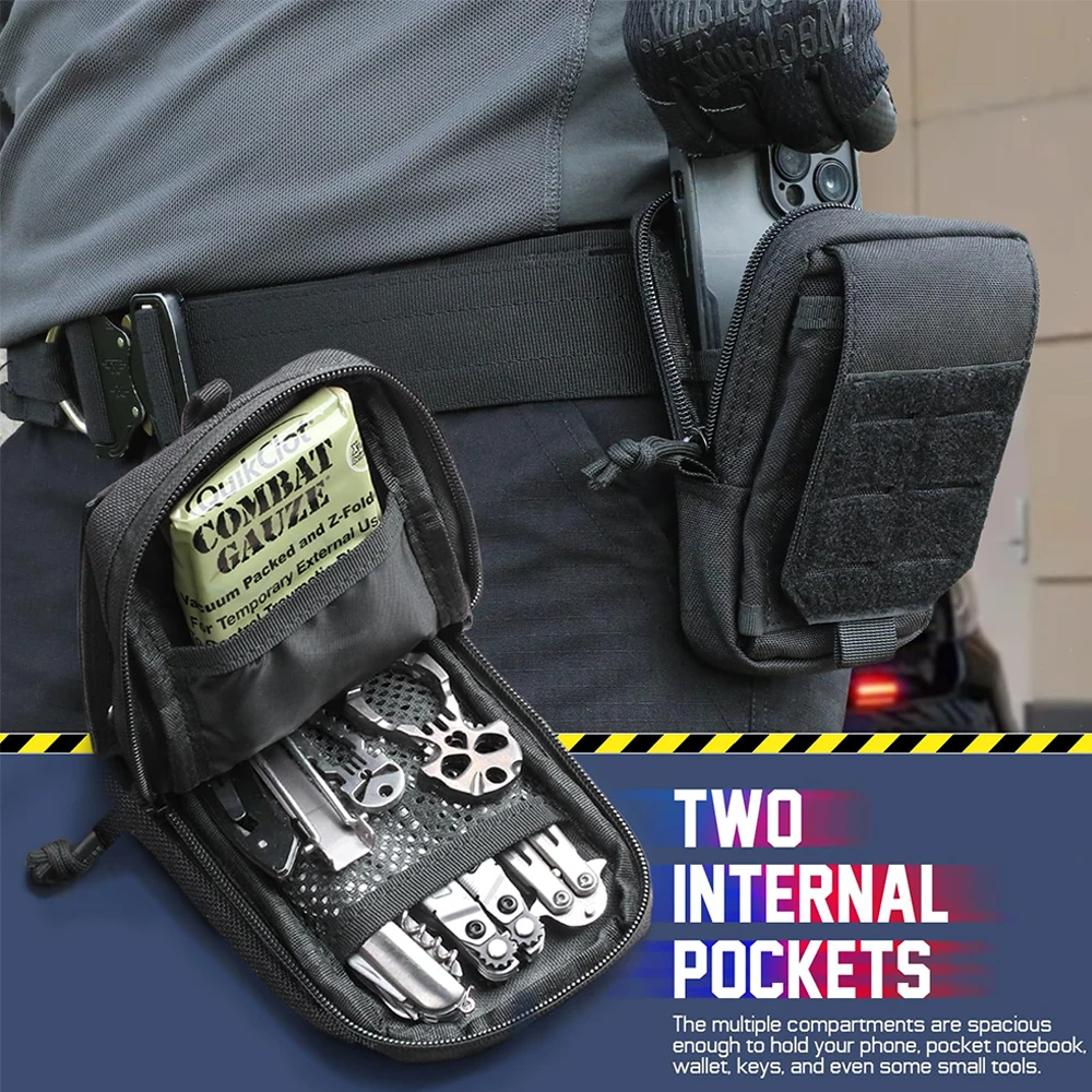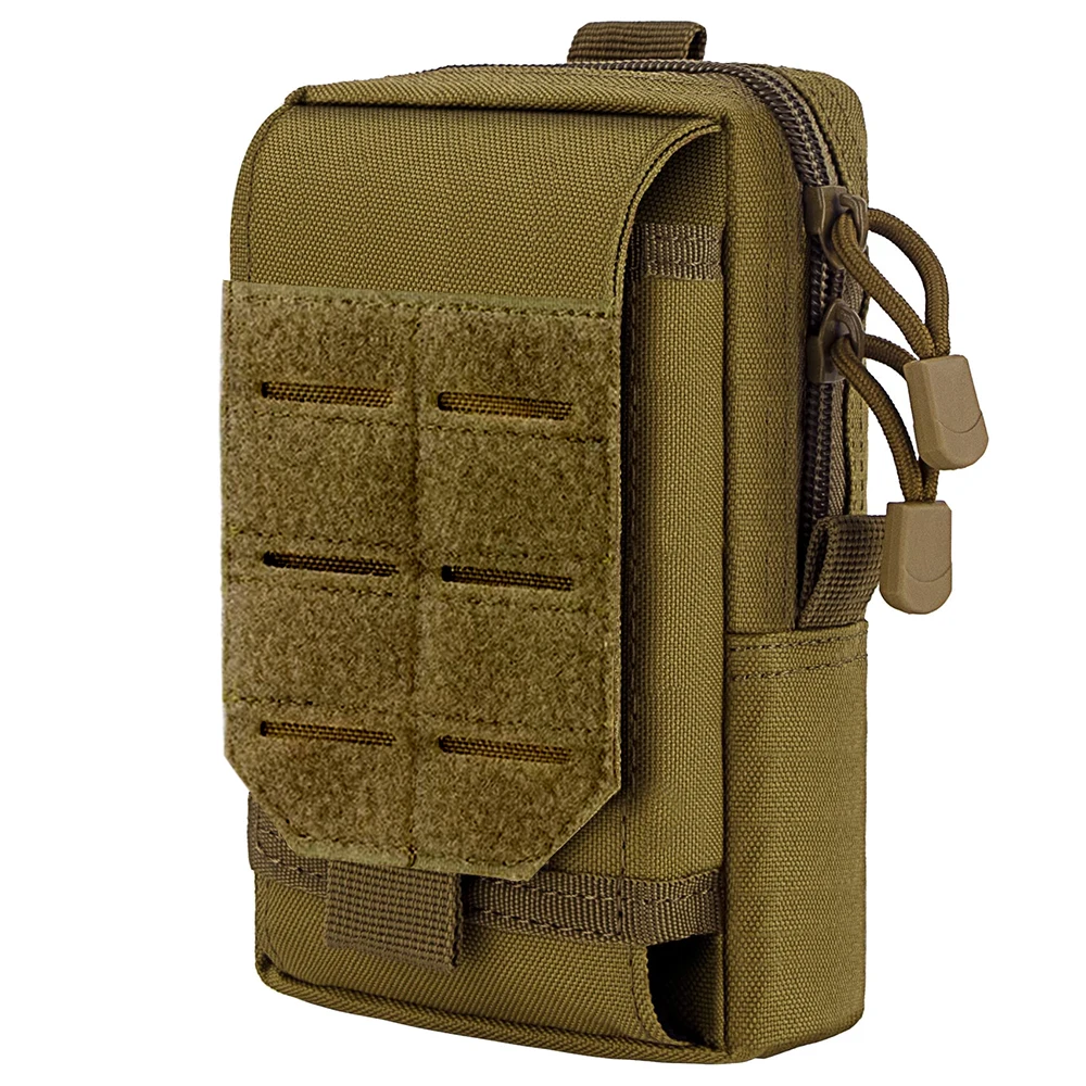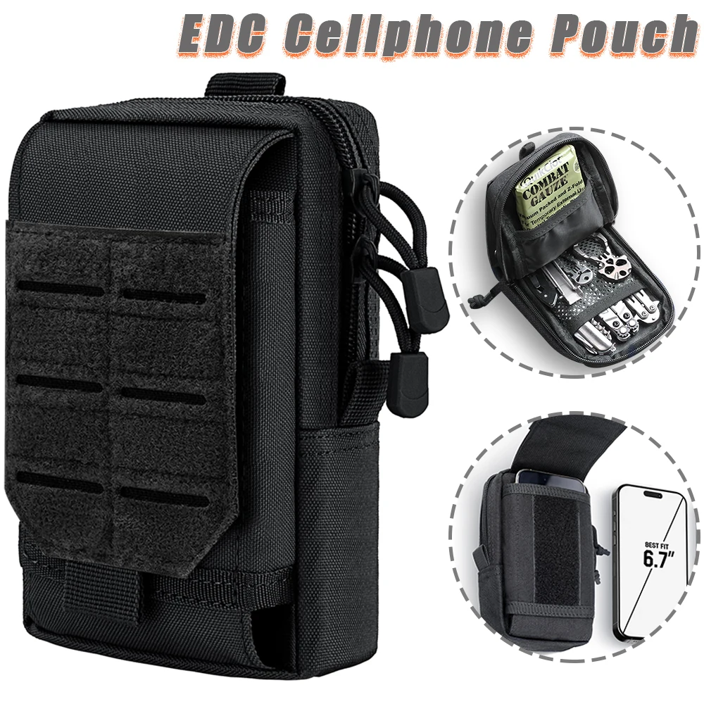 Keep your essential tech and tools within arm’s reach with this Tactical MOLLE EDC Utility Waist Bag. Designed as the ultimate compact organizer, this pouch is perfect for outdoor enthusiasts, tactical operators, and anyone needing a hands-free carry solution. It features two zippered main compartments that are spacious enough to hold a power bank, wallet, keys, small medical supplies, or a multi-tool. The exterior includes a specialized, buckled smartphone holster that fits most large devices (even with protective cases), ensuring your phone is secure yet instantly accessible. An integrated exterior sheath is perfectly sized for a tactical pen or small flashlight. Constructed from rugged, water-resistant nylon (often 600D or 1000D), it protects your gear from the elements and abrasion. The rear MOLLE strap system offers versatile mounting options: attach it securely to your tactical belt, fasten it to a plate carrier vest, or clip it onto the side of your backpack for extra storage. Whether you are on a hiking trail, at a job site, or commuting, this pouch keeps your pockets empty and your gear organized.