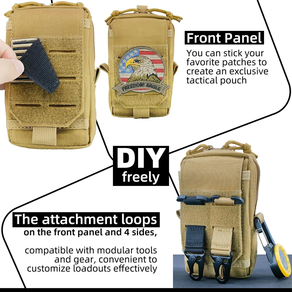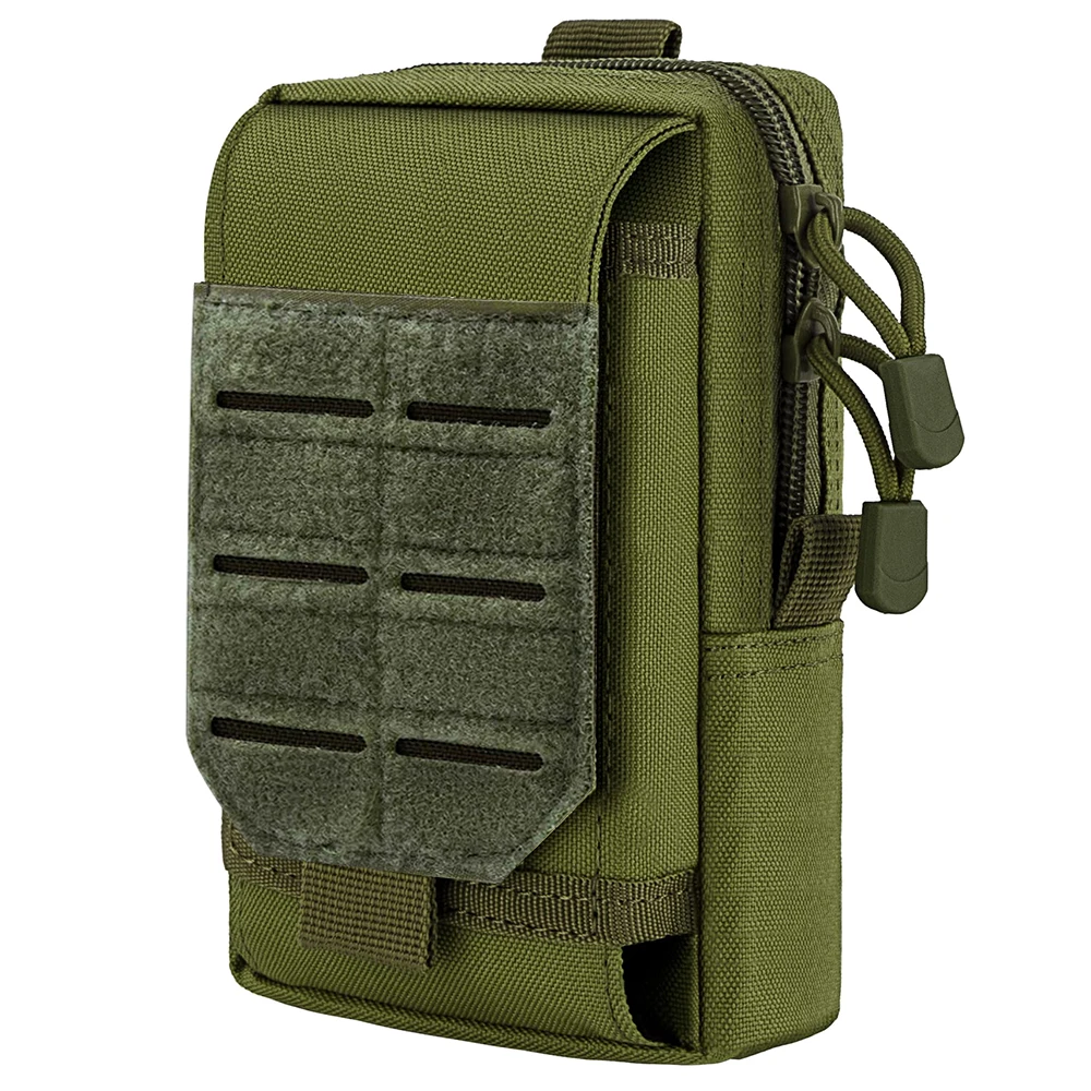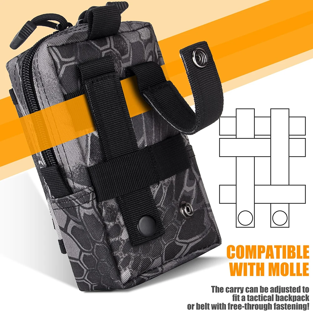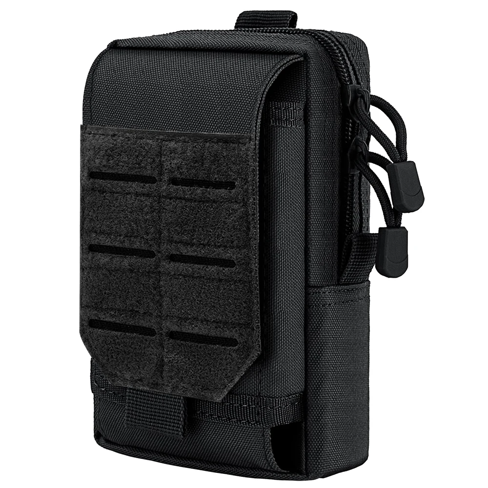 Keep your essential tech and tools within arm’s reach with this Tactical MOLLE EDC Utility Waist Bag. Designed as the ultimate compact organizer, this pouch is perfect for outdoor enthusiasts, tactical operators, and anyone needing a hands-free carry solution. It features two zippered main compartments that are spacious enough to hold a power bank, wallet, keys, small medical supplies, or a multi-tool. The exterior includes a specialized, buckled smartphone holster that fits most large devices (even with protective cases), ensuring your phone is secure yet instantly accessible. An integrated exterior sheath is perfectly sized for a tactical pen or small flashlight. Constructed from rugged, water-resistant nylon (often 600D or 1000D), it protects your gear from the elements and abrasion. The rear MOLLE strap system offers versatile mounting options: attach it securely to your tactical belt, fasten it to a plate carrier vest, or clip it onto the side of your backpack for extra storage. Whether you are on a hiking trail, at a job site, or commuting, this pouch keeps your pockets empty and your gear organized.