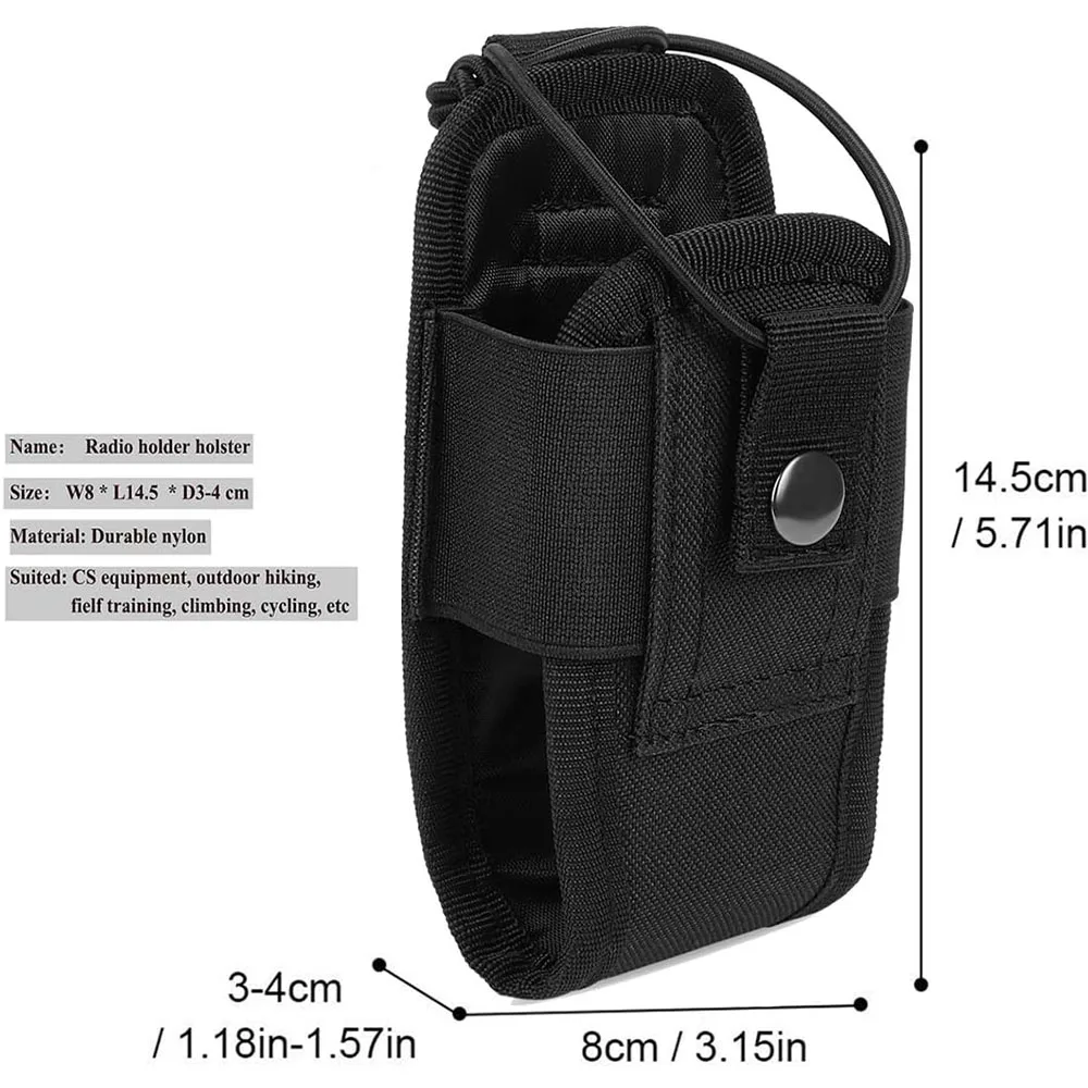 The Tactical Radio Holster Pouch is a rugged and reliable accessory for carrying your walkie-talkie or intercom device. Designed for outdoor, tactical, and duty use, it provides quick access and secure storage for communication gear. Made from durable nylon fabric, it’s resistant to wear, water, and harsh conditions. The adjustable strap fits most standard radios, ensuring a snug and stable hold. Compatible with MOLLE systems, it easily attaches to tactical vests, belts, or backpacks. Ideal for hunting, camping, hiking, or security work, it keeps your radio within reach at all times. The lightweight design ensures comfort without adding bulk to your gear. Reinforced stitching enhances durability, even during intense outdoor activity. Its open-top design allows for fast communication access when needed. Stay connected and organized on every mission or adventure with the Tactical Radio Holster Pouch.