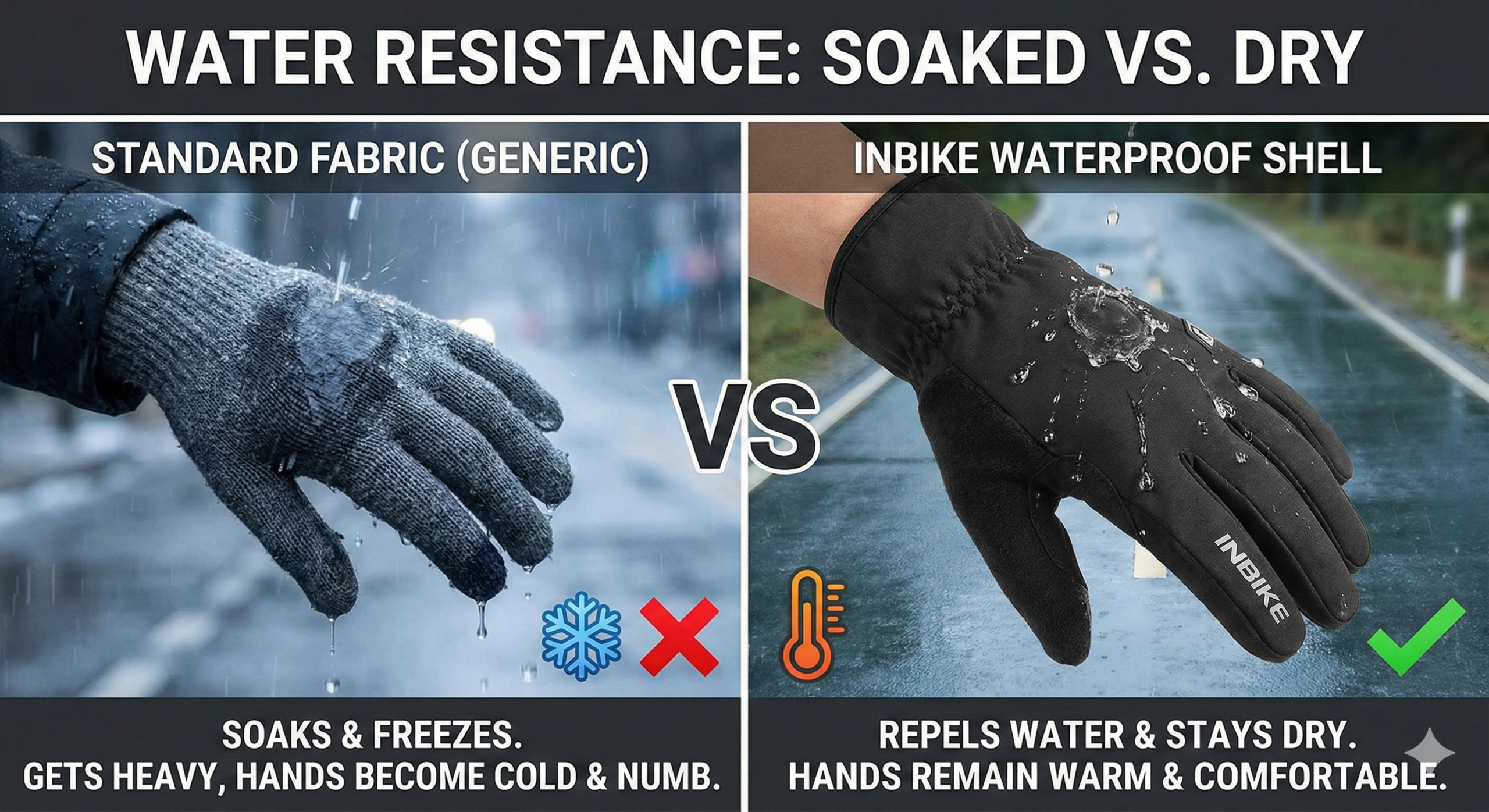 Rain, sleet, and freezing wind are no match for the INBIKE Waterproof Winter Cycling Gloves. Designed for the dedicated all-weather rider, these gloves feature a composite windproof and water-resistant outer shell. Unlike standard knit gloves that soak up water like a sponge, these cause rain and snow to bead up and roll off, keeping your hands dry and functional during wet commutes or muddy trail rides.